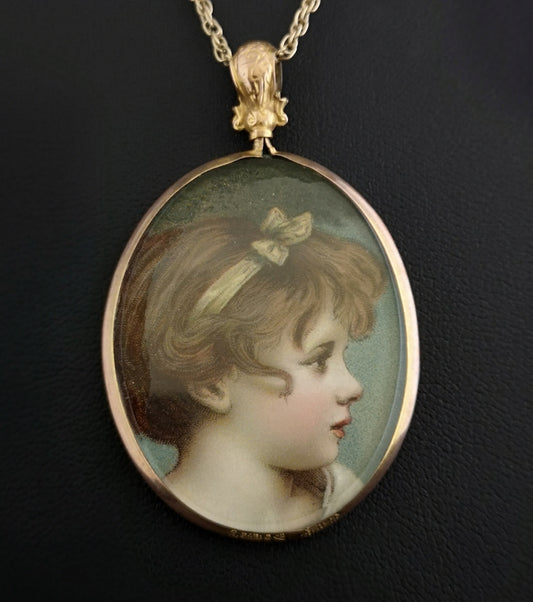 Antique gold portrait pendant and chain, child portrait