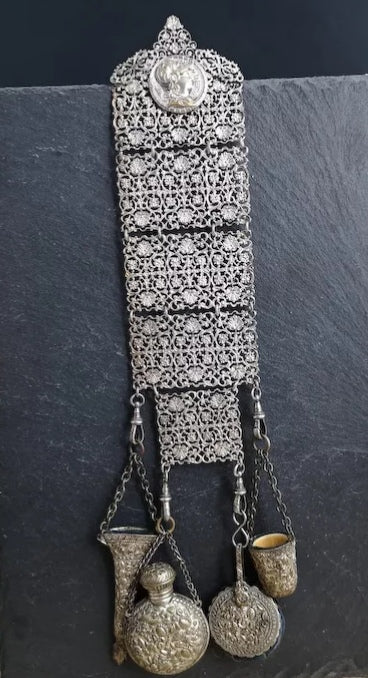 AusverkauftAntique silver plated chatelaine, Art Nouveau