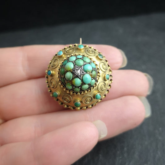 Antique turquoise and diamond locket brooch, Victorian 15ct