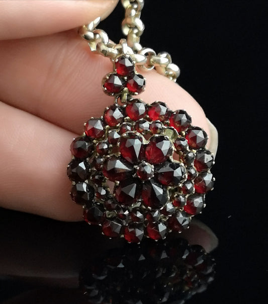 AusverkauftVictorian bohemian garnet pendant, forget me not
