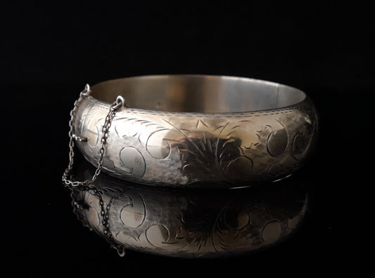Vintage silver bangle, sterling silver engraved bracelet
