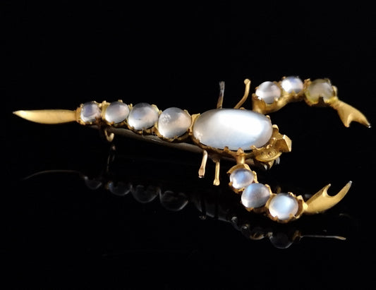 Antique moonstone scorpion brooch, Victorian 22ct gold