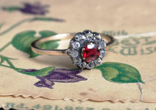 Antique Victorian paste cluster ring, gold and silver