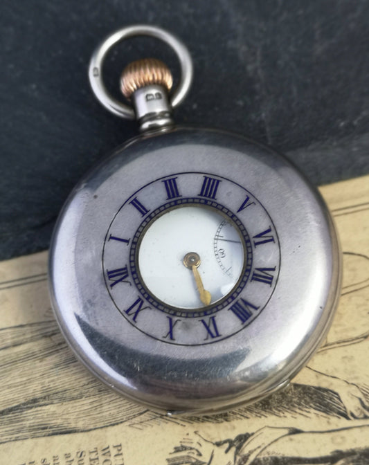 Antique sterling silver half hunter pocket watch, Moeris