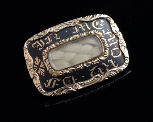 AusverkauftVictorian gold mourning brooch, 15ct, enamel