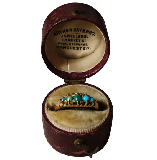 Antique turquoise ring, 18ct gold, Edwardian, boxed