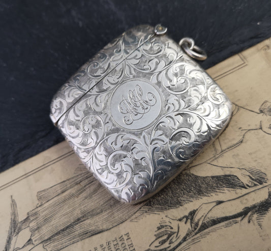 AusverkauftAntique sterling silver vesta case, engraved