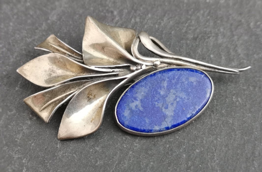 Antique Art Nouveau silver and Lapis lazuli brooch