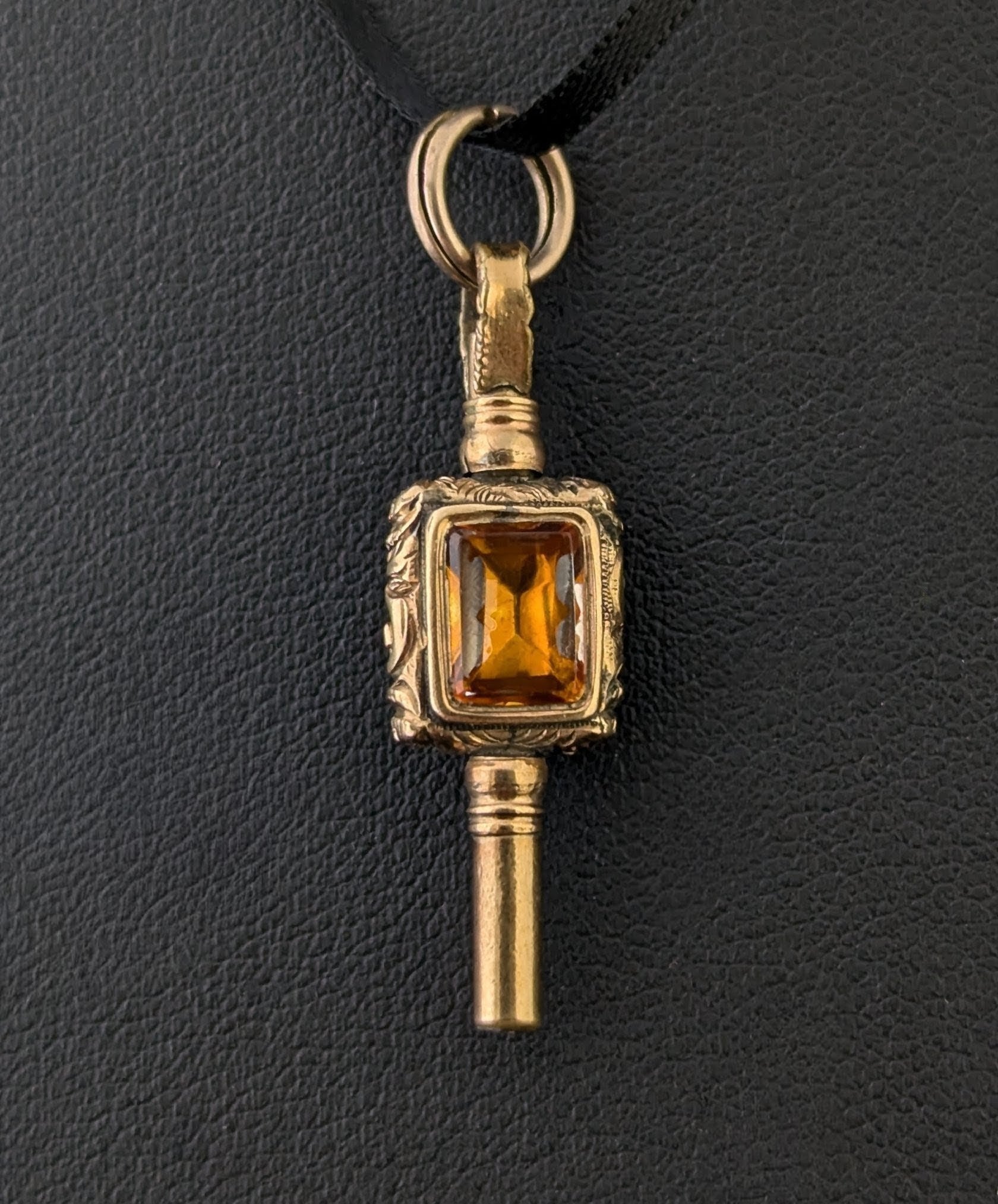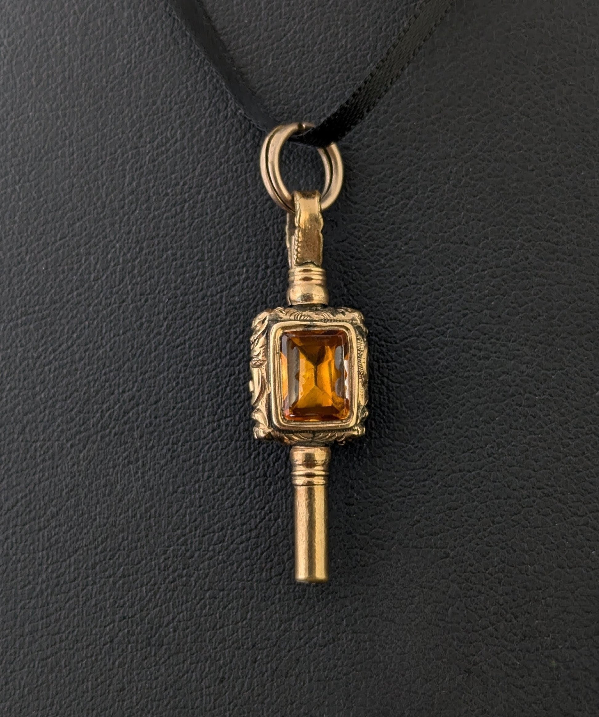 A charming little antique early Victorian era 9ct gold cased watch key pendant.