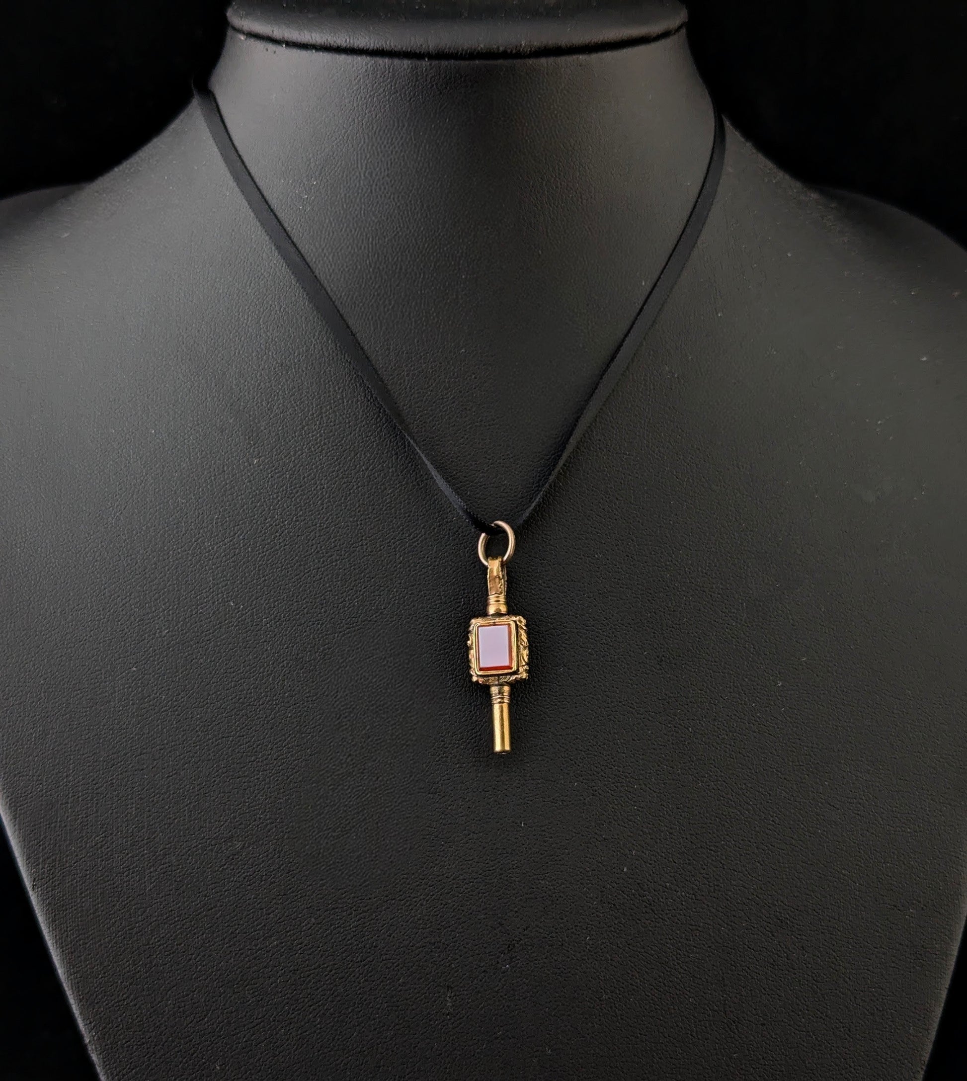 Antique 9ct gold cased watch key pendant, Foiled Paste and Sardonyx