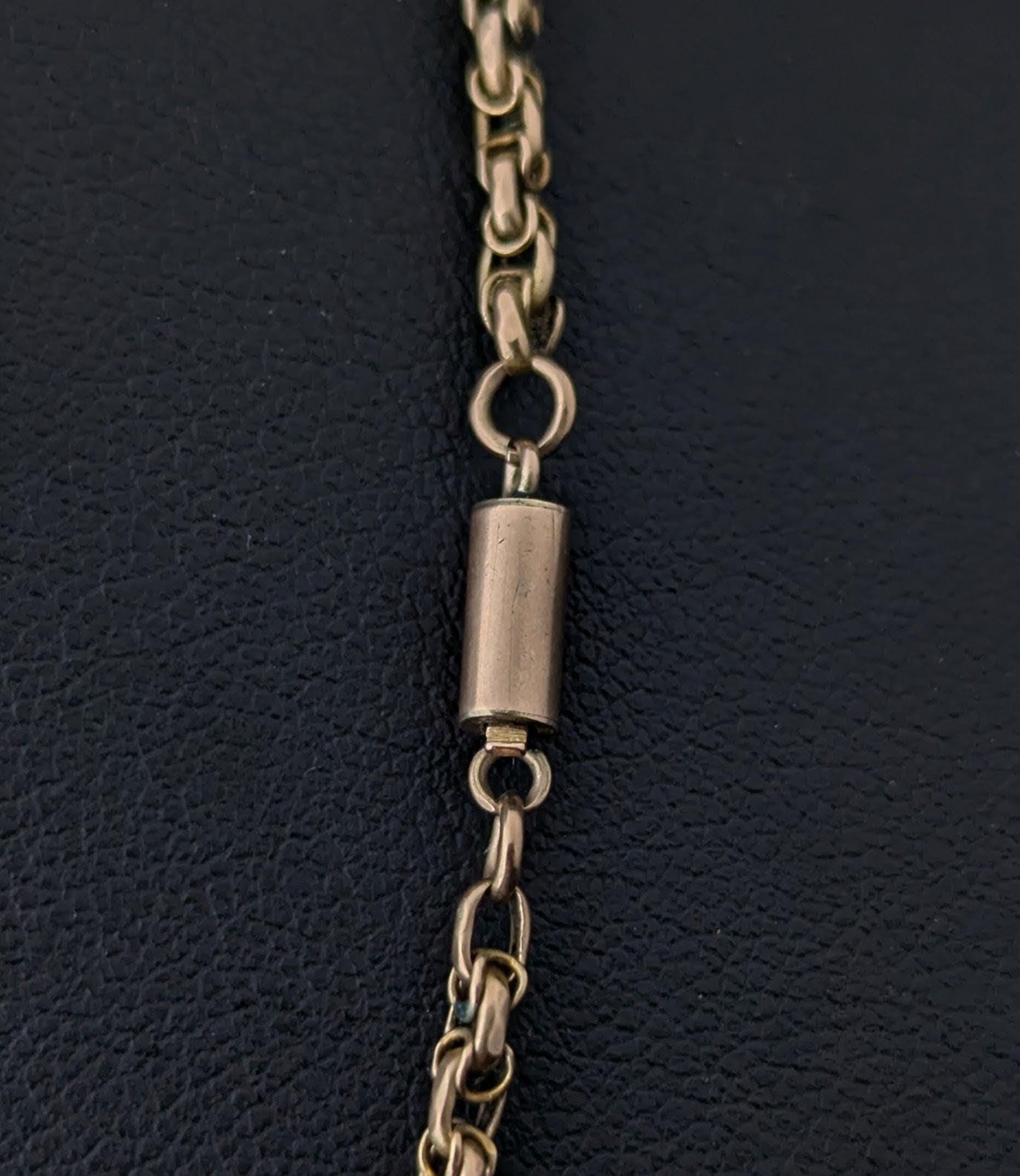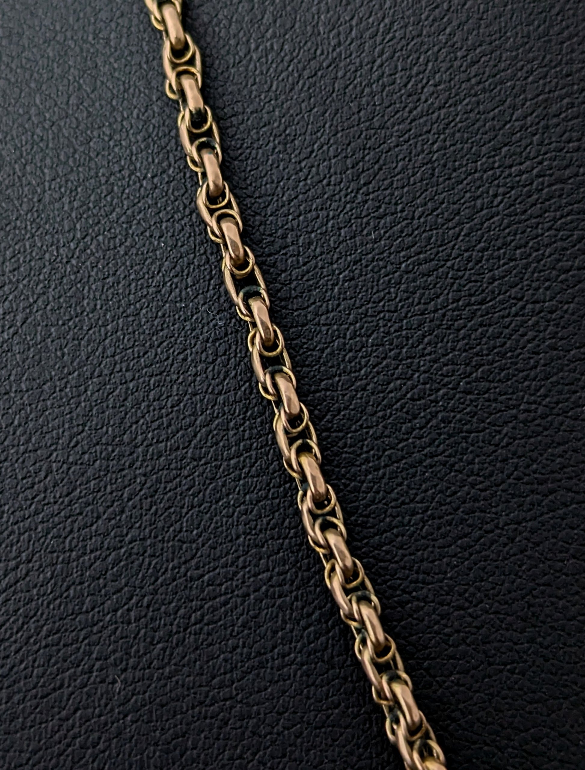 Stunning double interlinking belcher or rolo links in a rich, aged yellow gold with a barrel fastener, it is a nice length and looks great worn alone or with the addition of your favourite locket or pendant.