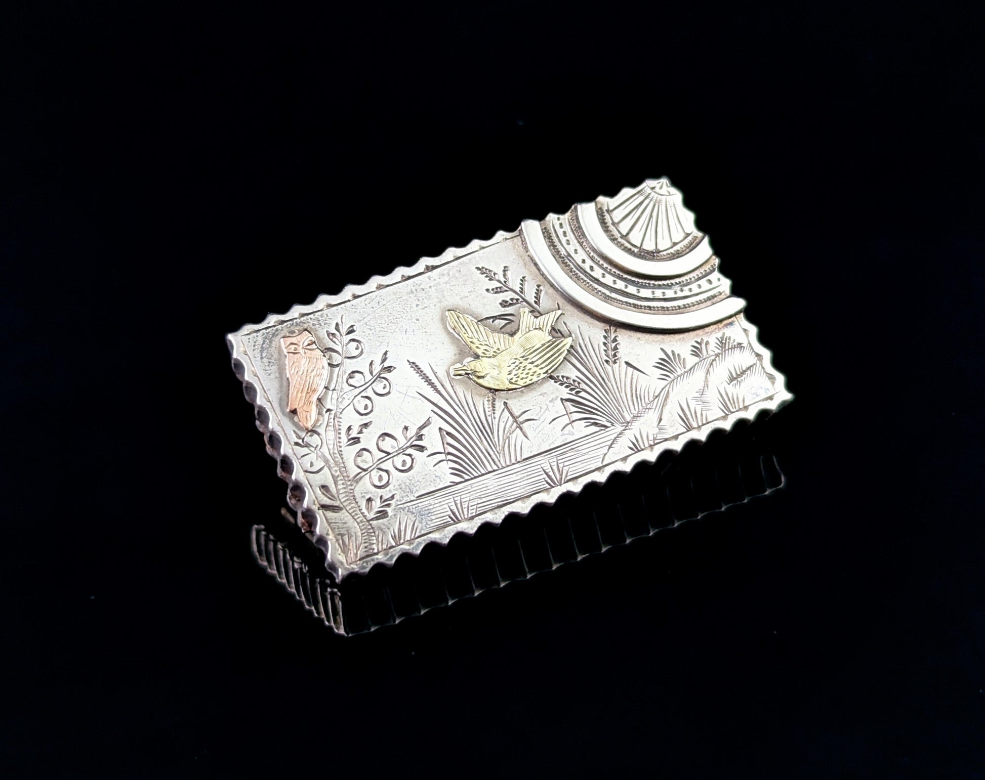 Unmarked, tests as sterling silver and 9ct gold, Aesthetic era, Victorian, c1880s