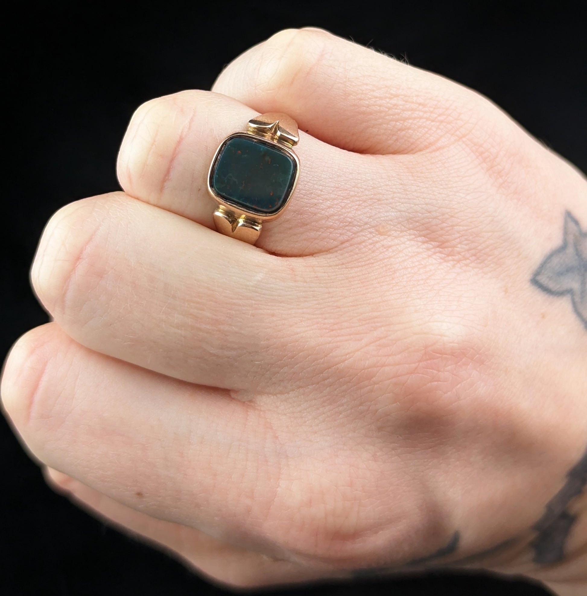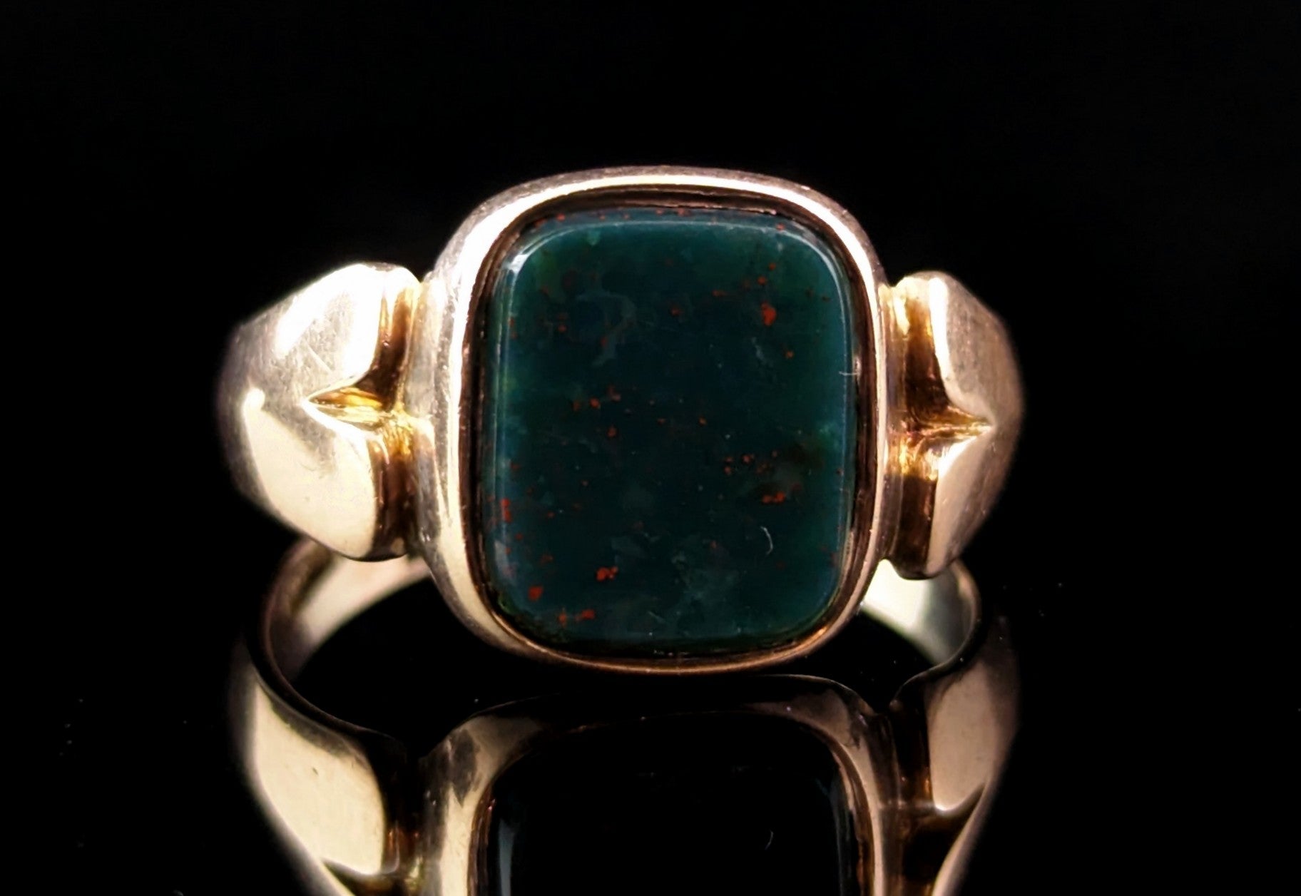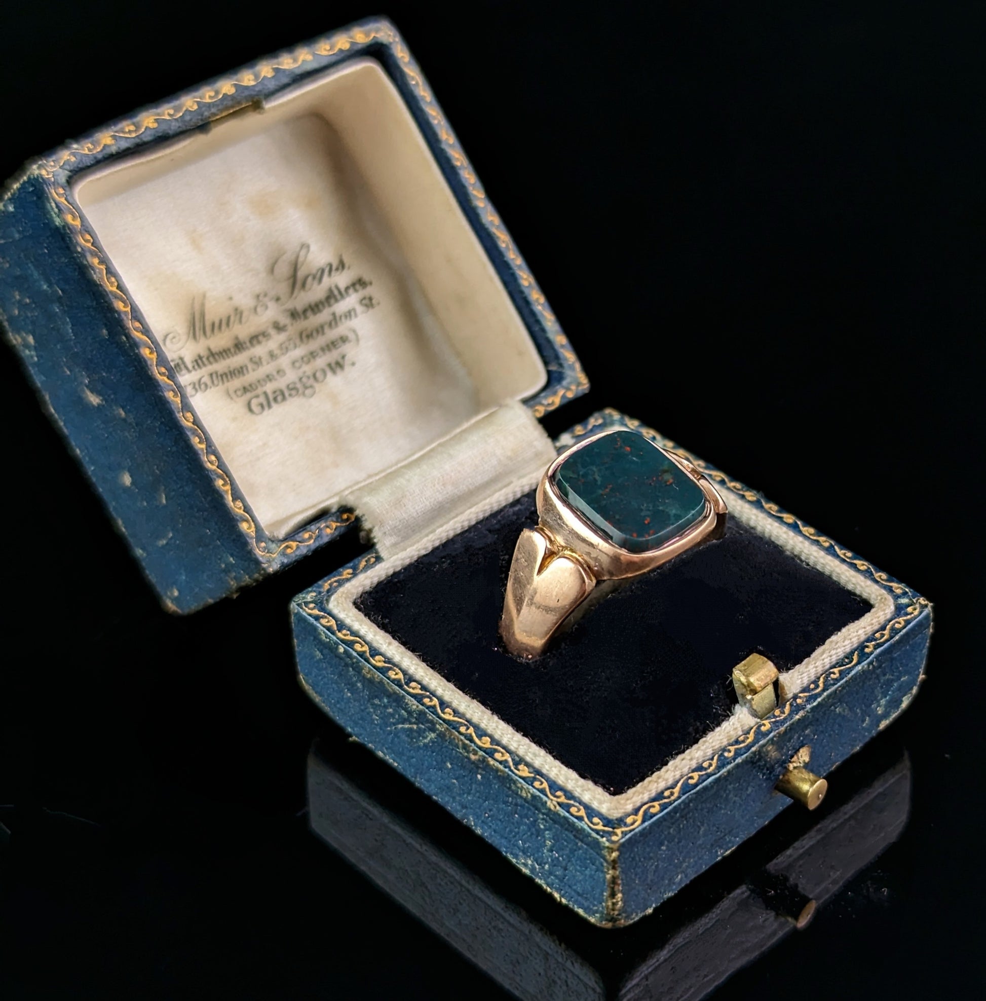 Antique Bloodstone signet ring, 9ct gold, Victorian, boxed