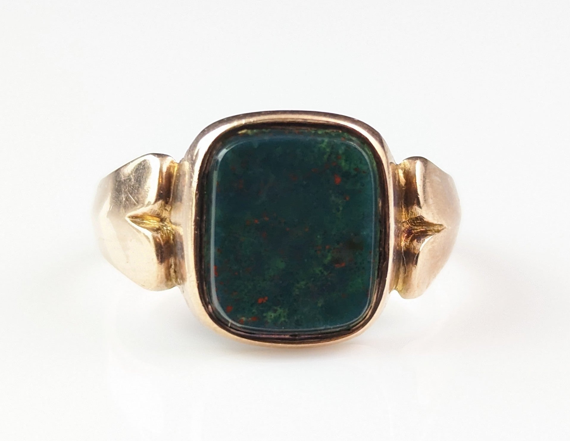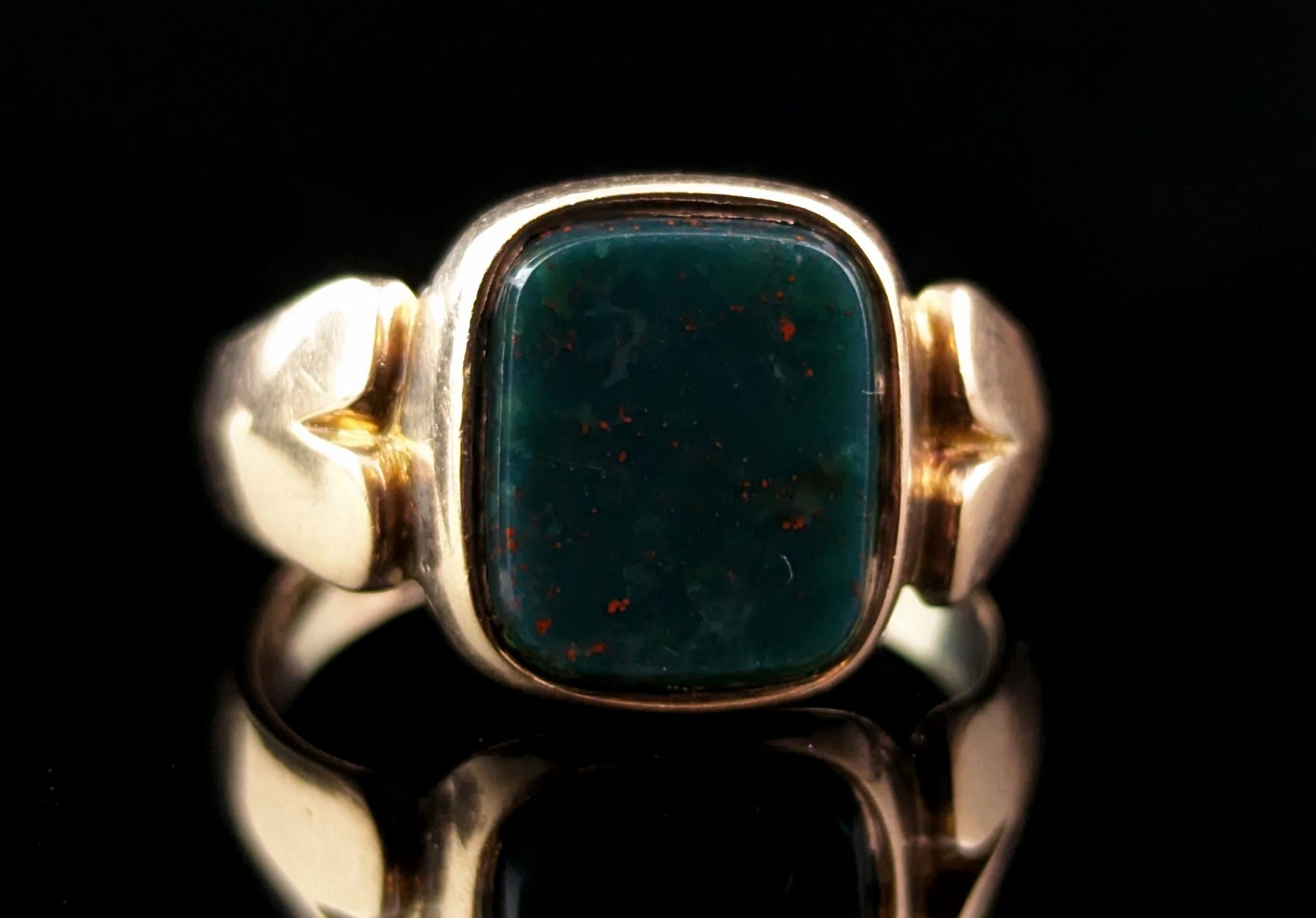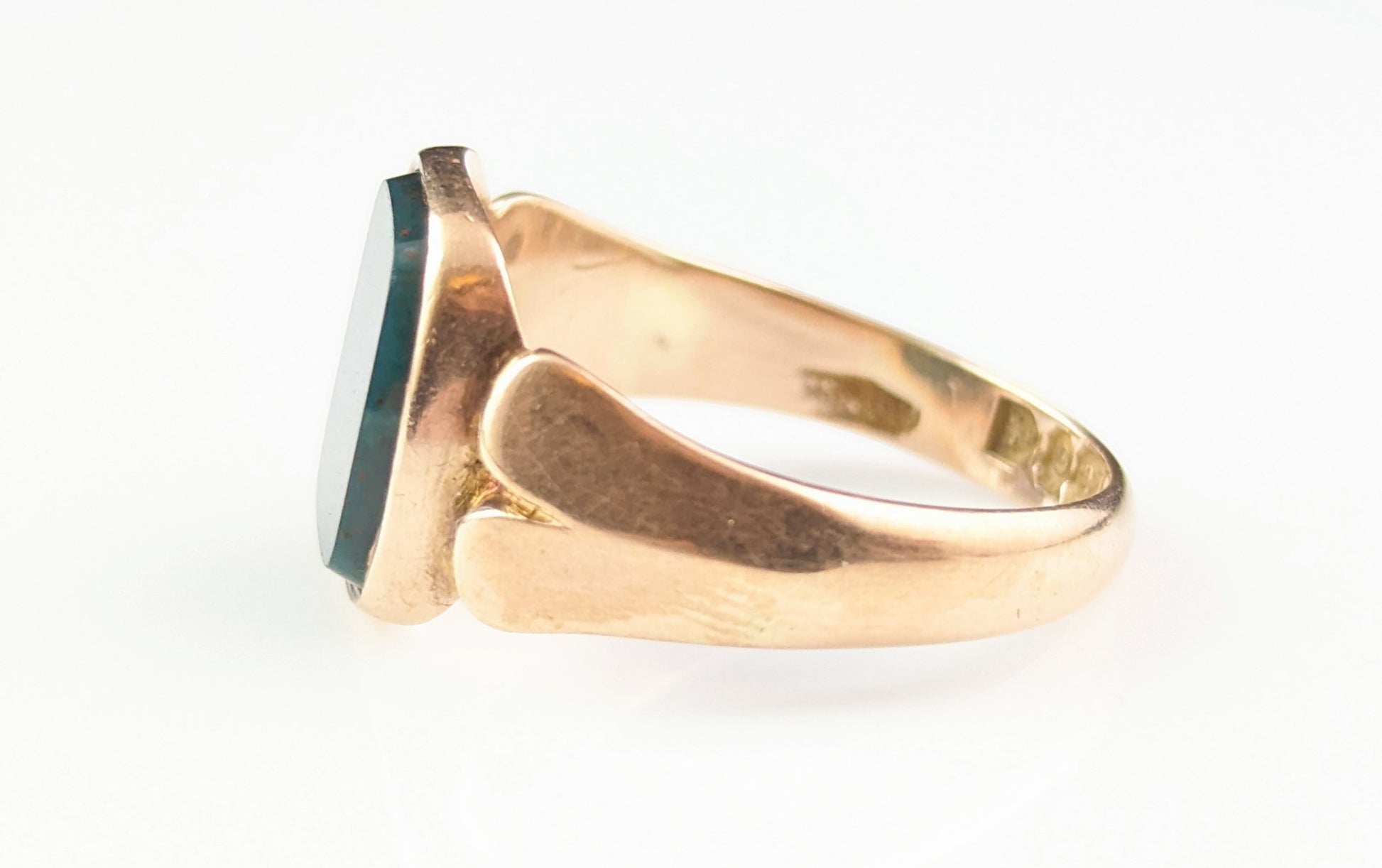 Antique Bloodstone signet ring, 9ct gold, Victorian, boxed