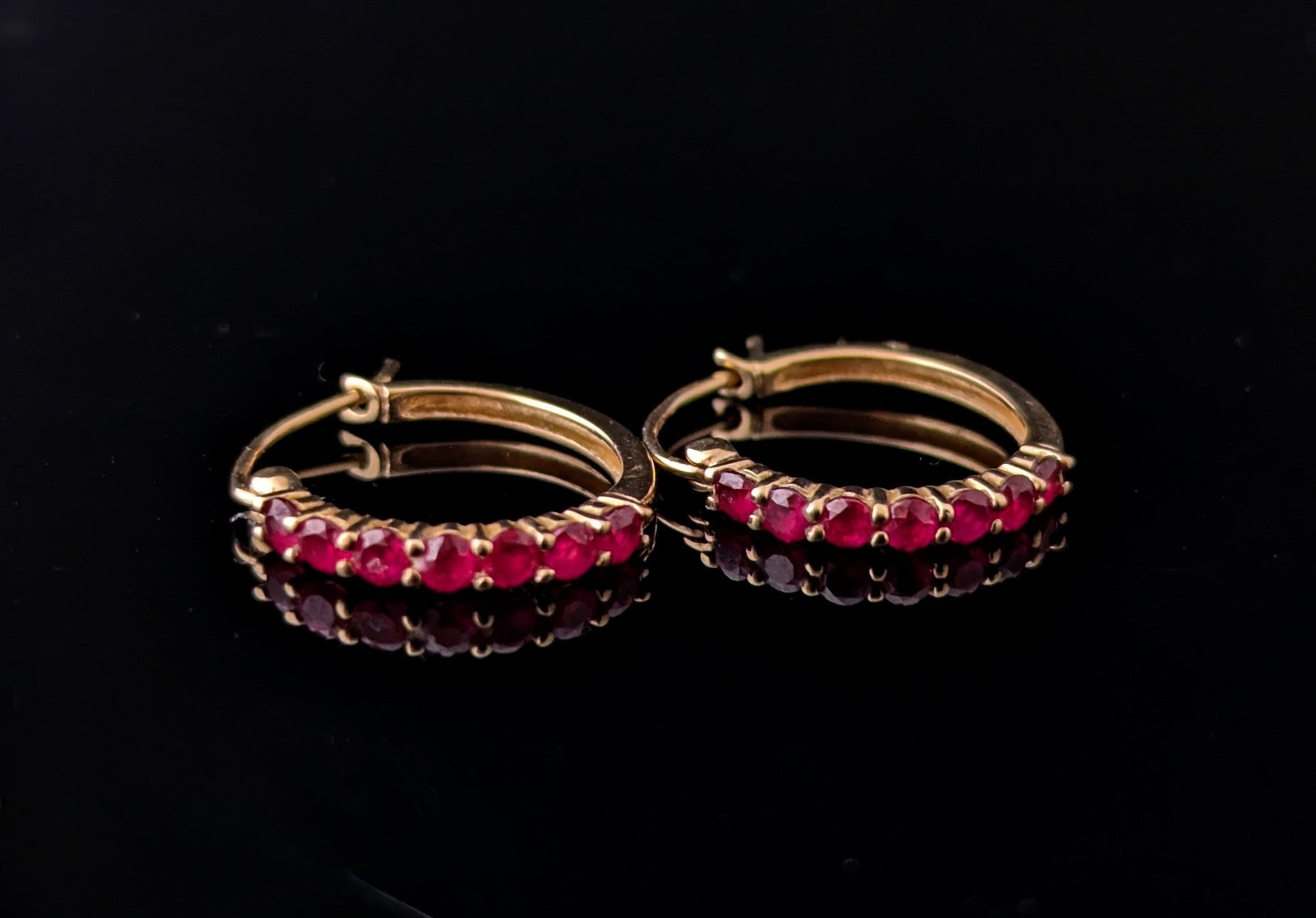 Vintage Ruby hoop earrings, 9ct yellow gold