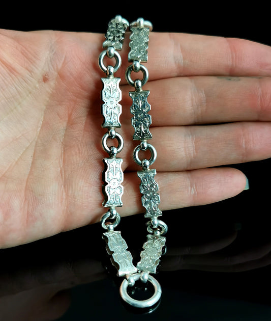 Victorian silver book chain necklace, collar