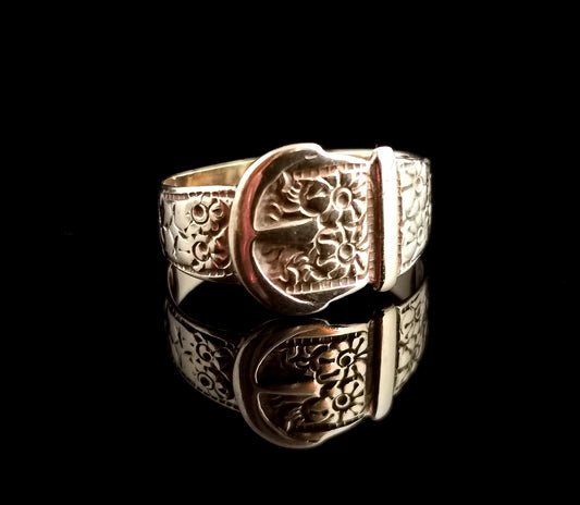 Vintage 9ct gold buckle ring, floral, yellow gold