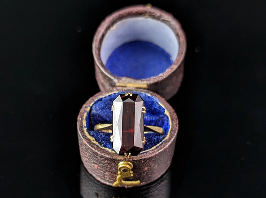 Vintage Art Deco Baguette cut Garnet cocktail ring, 15ct gold