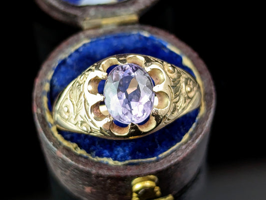 Vintage Art Deco Amethyst signet ring, 9ct gold, solitaire