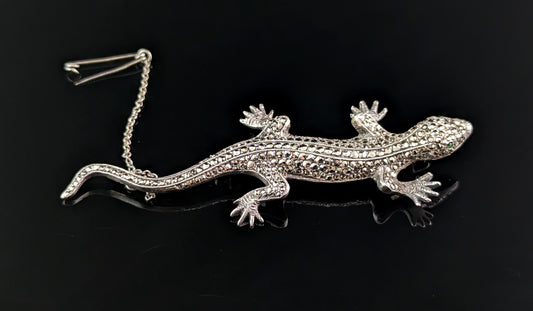 Vintage Art Deco Marcasite lizard brooch, 800 silver
