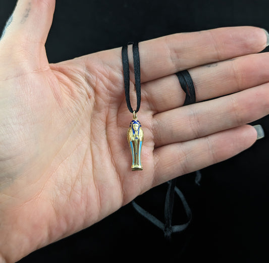 Vintage Art Deco silver gilt and enamel sarcophagus pendant, locket