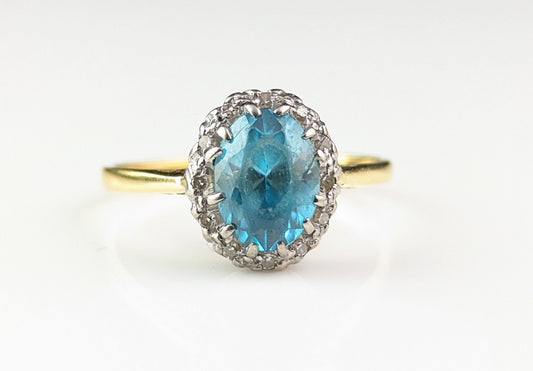 Vintage Blue Zircon and Diamond ring, 18ct gold