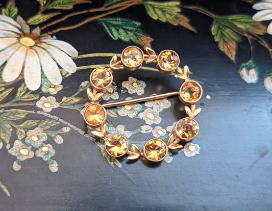 Vintage Citrine wreath brooch, 9ct gold, Cropp and Farr