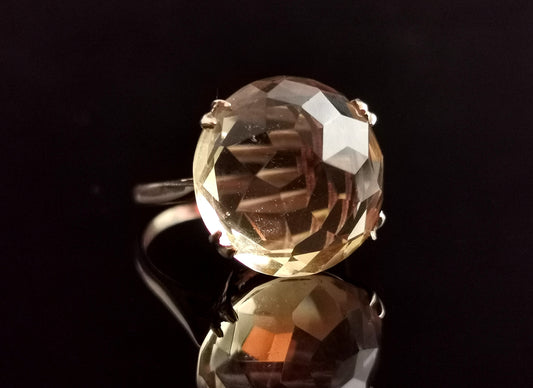 Vintage citrine cocktail ring, large, 9ct gold, c1970s