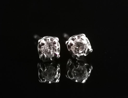 Vintage Diamond stud earrings, 9ct White gold
