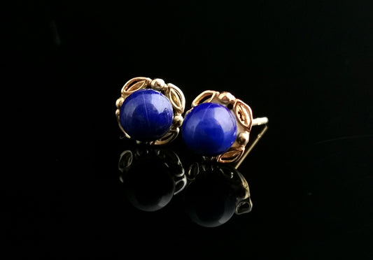 Vintage Lapis Lazuli stud earrings, 9ct yellow gold