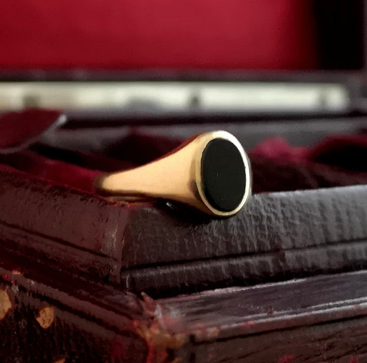 Vintage onyx signet ring, 9ct gold, pinky ring
