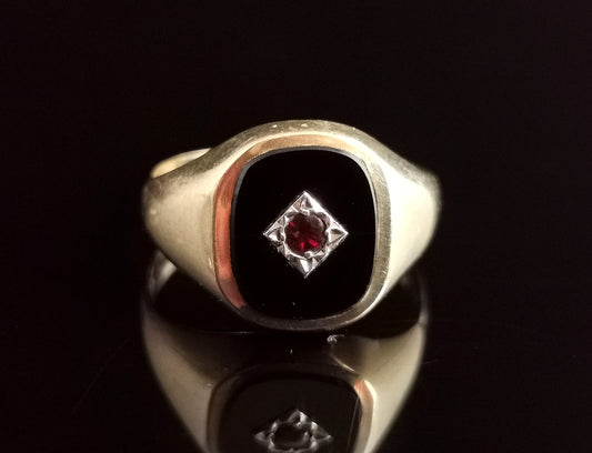 Vintage Onyx and Garnet signet ring, 9ct yellow gold