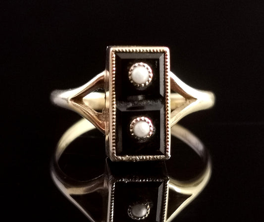 Vintage Onyx domino ring, 14ct gold, seed pearl