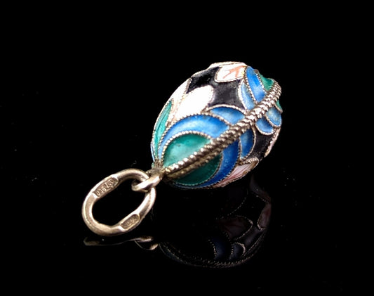 Vintage Russian silver and enamel Easter egg pendant