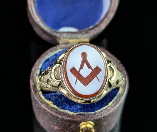 Vintage Sardonyx Masonic signet ring, 9ct yellow gold