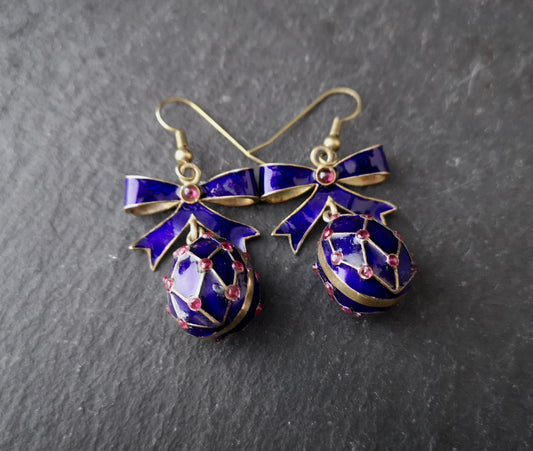 Vintage Russian enamel egg earrings, silver gilt