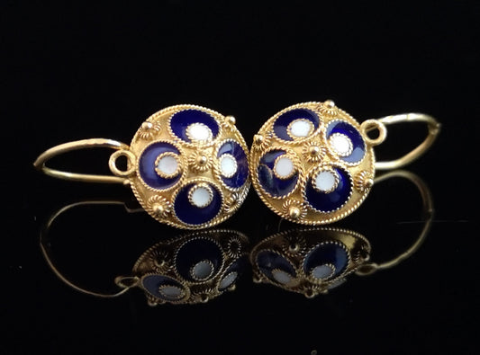 Vintage Russian enamel earrings, silver gilt