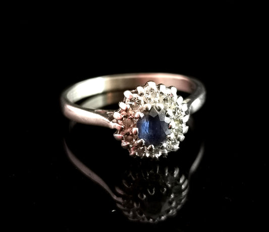 Vintage Sapphire and Diamond cluster ring, 18ct white gold
