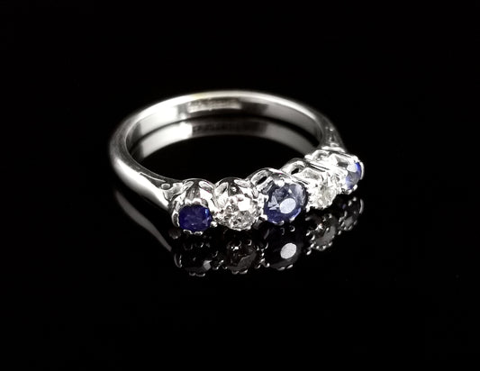 Vintage Sapphire and Diamond half hoop ring, 18ct gold and platinum