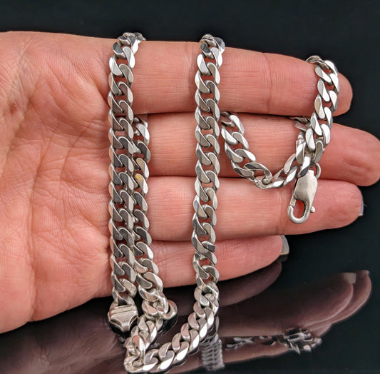 Vintage sterling silver flat curb link chain necklace
