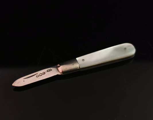 Vintage sterling silver fruit knife, mother of pearl
