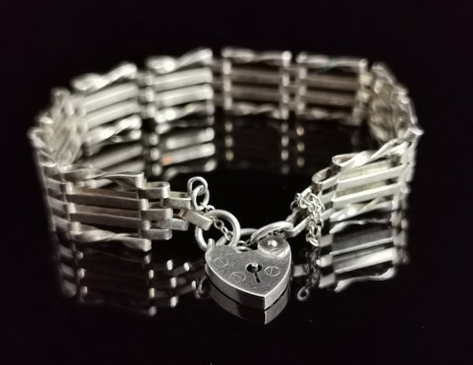 Vintage sterling silver Gate bracelet, heart padlock, 1970s