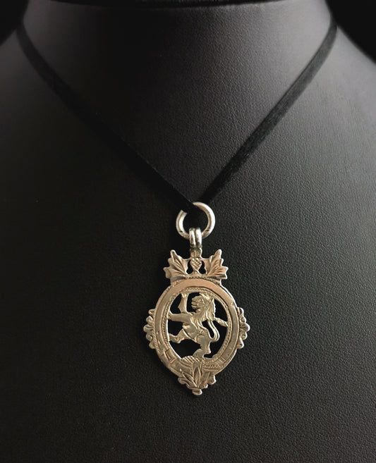 Vintage sterling silver fob pendant, Lion, Thistle and buckle