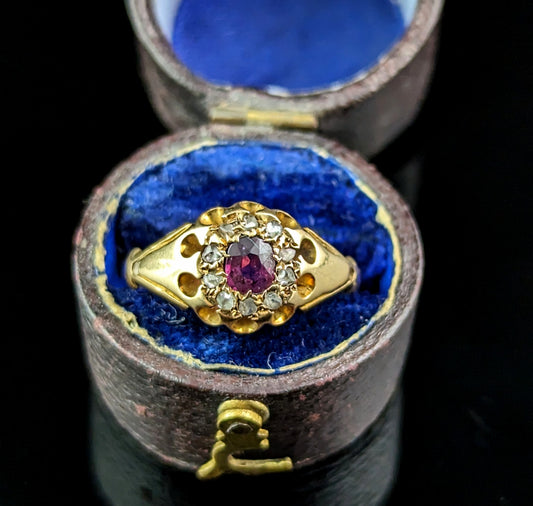 Antique Ruby and Diamond cluster ring, 18ct yellow gold
