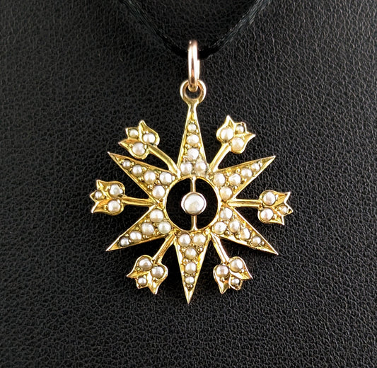 Antique Pearl Starburst pendant, 9ct yellow gold, Edwardian