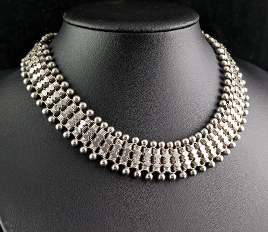 Antique Victorian silver collar necklace, Aesthetic, Stork
