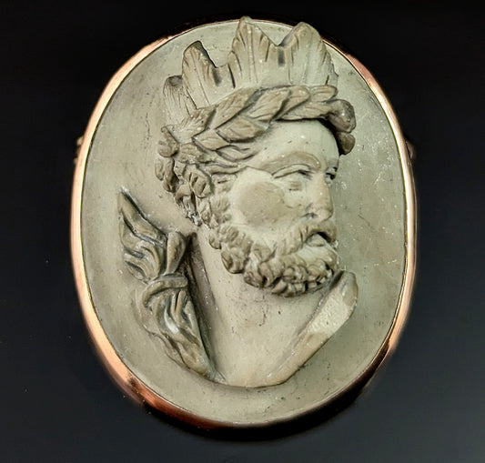 Antique Lava Cameo brooch, Helios, Victorian