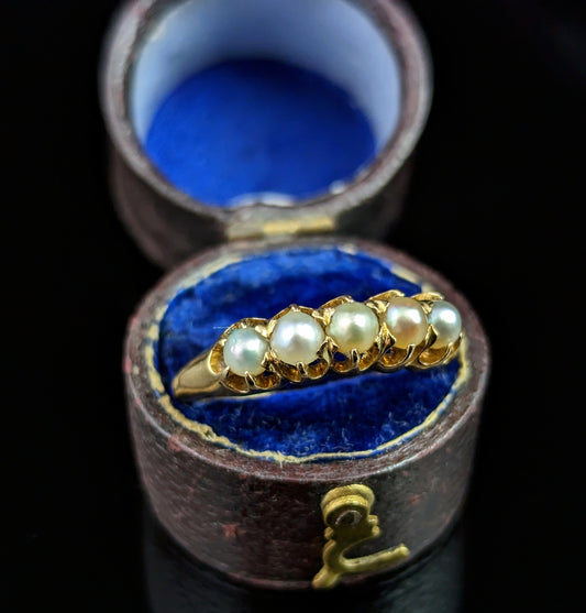 Antique Pearl Half Hoop ring, 18ct gold, Edwardian