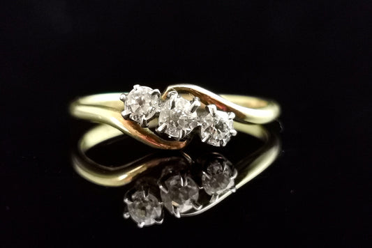 Antique Art Deco Diamond trilogy ring, 18ct gold and Platinum, 0.30ct