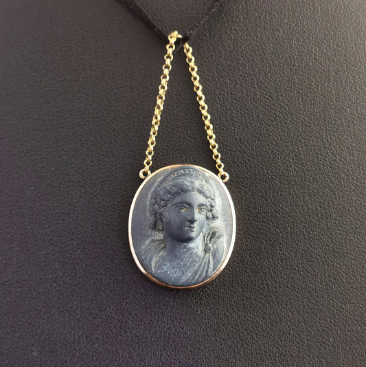 Antique Lava Cameo pendant, 9ct gold, Grand Tour